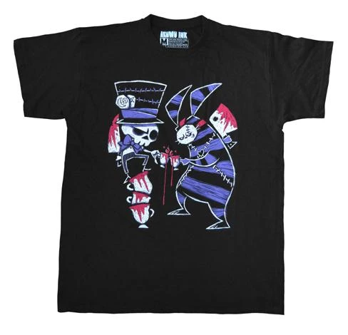 Original hand-drawn artwork of the Mad Hatter and the Harvest Hare clinking their glasses right before they are about to set Wonderland on fire. Based off the artwork from Akumu Ink’s second self-published storybook Alice’s Nightmare in Wonderland.