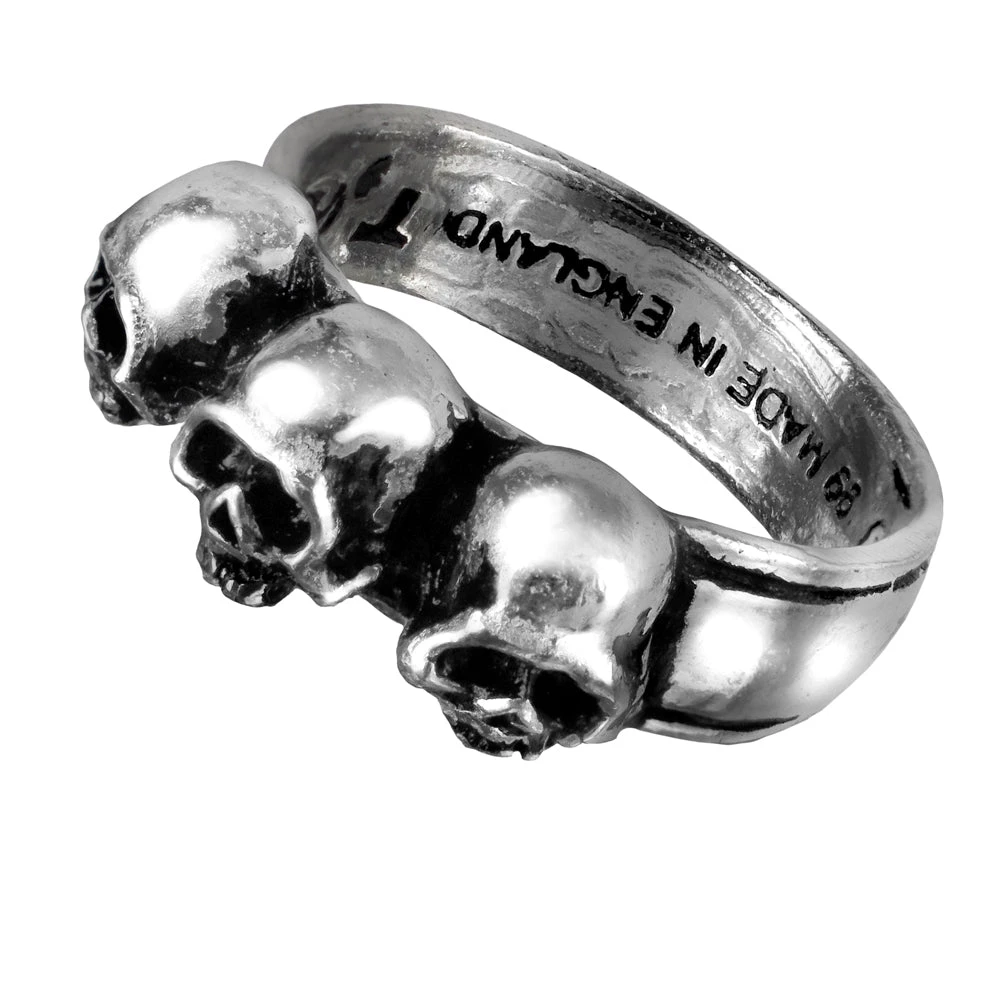 Three deaths for the auspicious. Each caput mortem, or death’s head, representing one mortal life.
