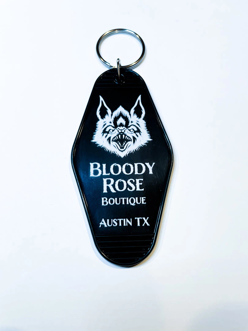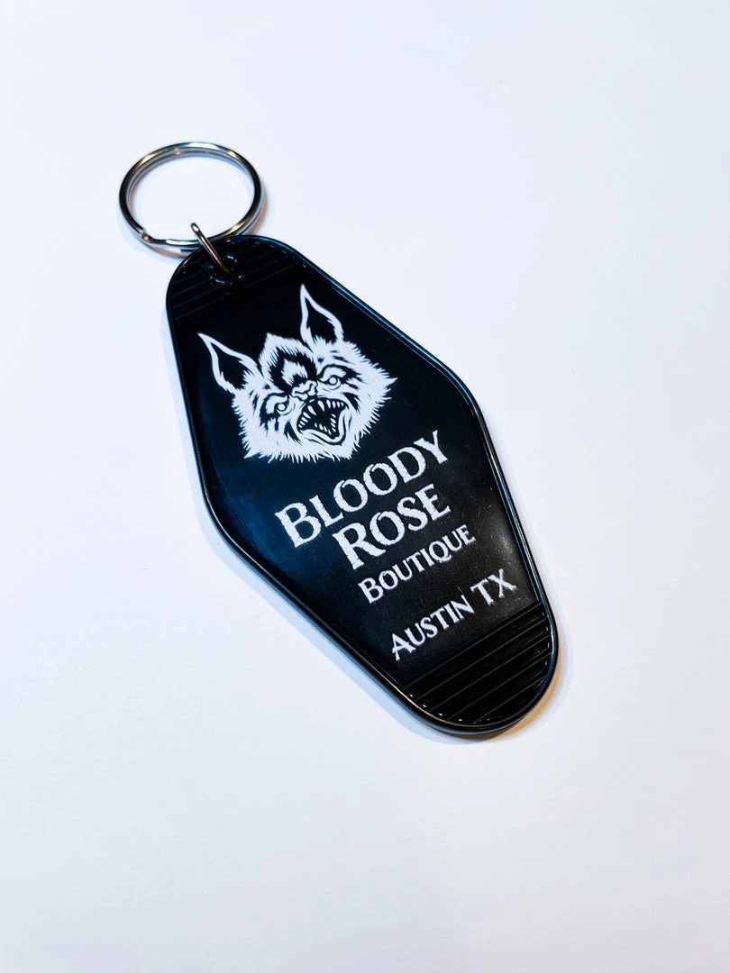 Bloody Rose Boutique motel key ring featuring our bat graphic!