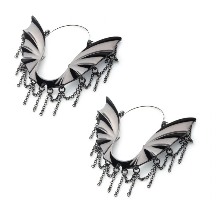 20g Steel with Black Plated Bat & Chains Plug Hoops.