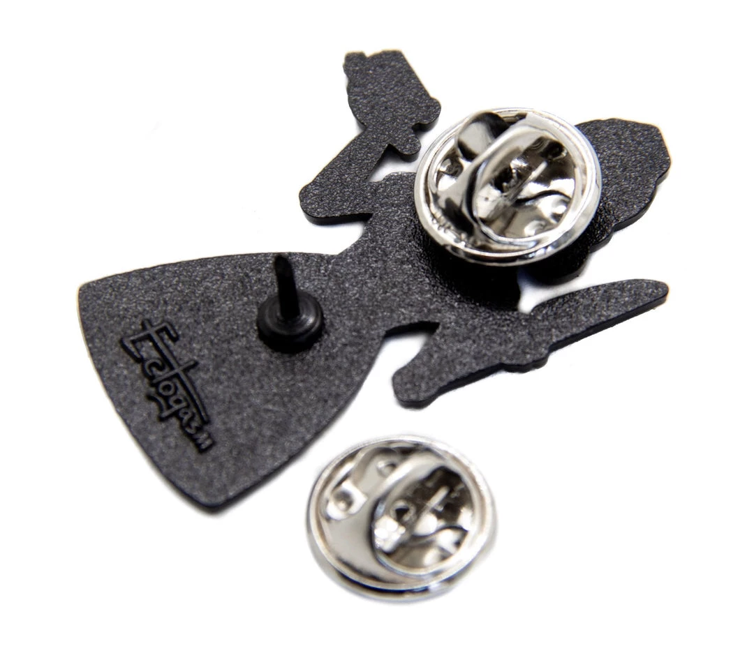 – Two metal clasps lock this pin in place and keep it from spinning.