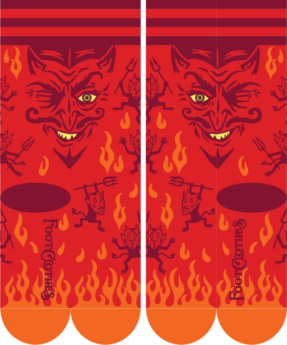 These vintage devil socks are inspired by 1950s magic posters. In many of the posters, these little devils are seen whispering secrets into the magician’s ears and causing all sorts of mischief.