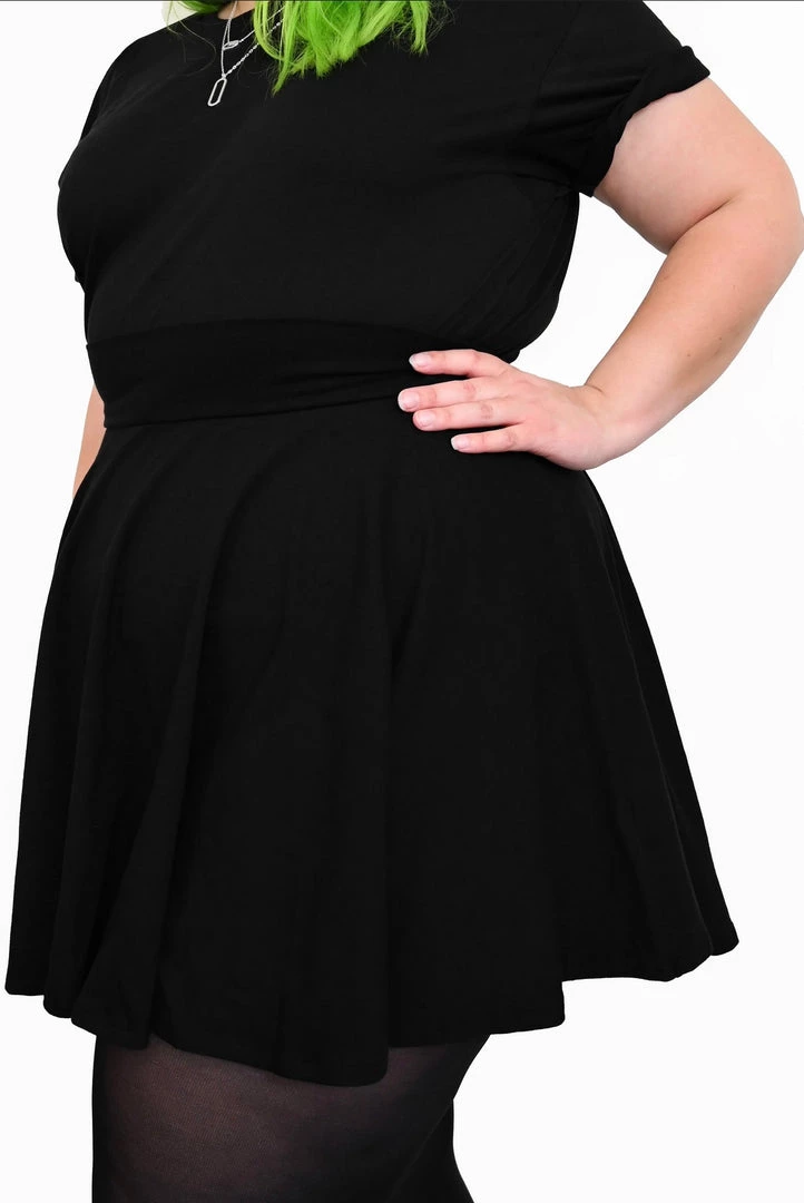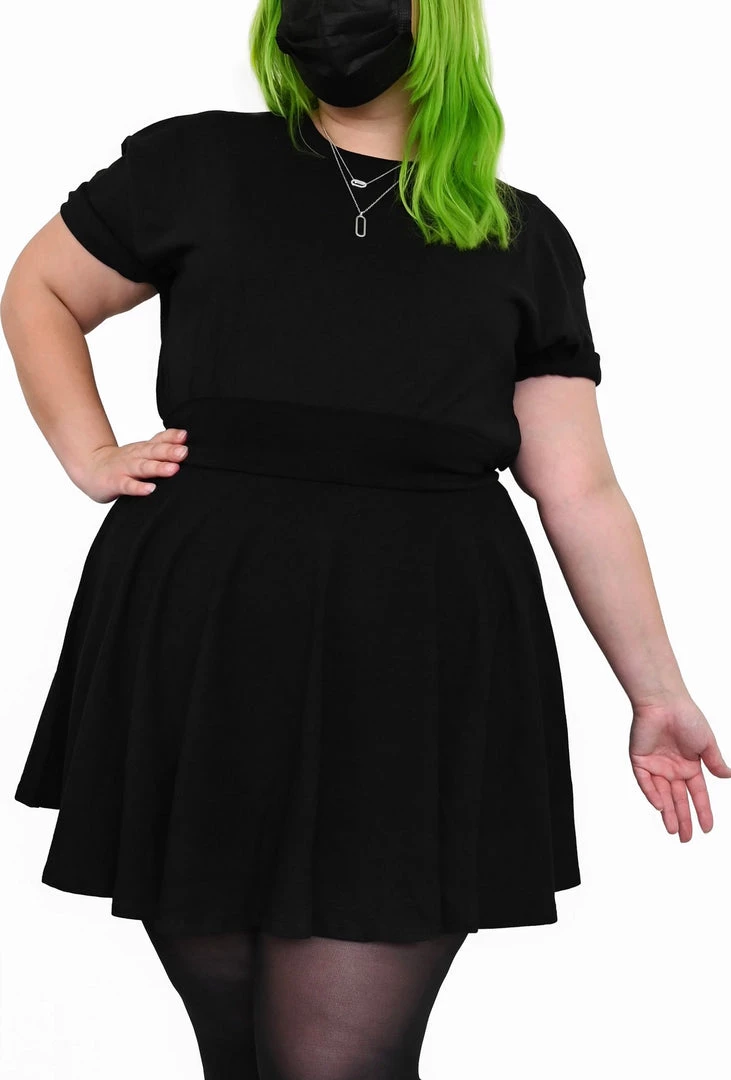 Dark hair model is in a medium. Green hair model is in a 2X.