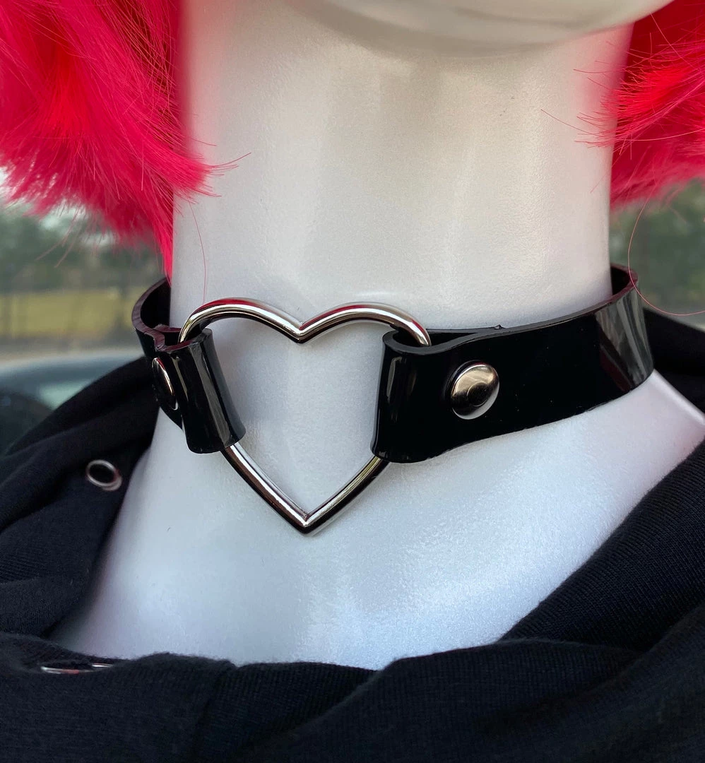 Funk Plus Chokers And Collars Large Heart Choker – Black Vinyl