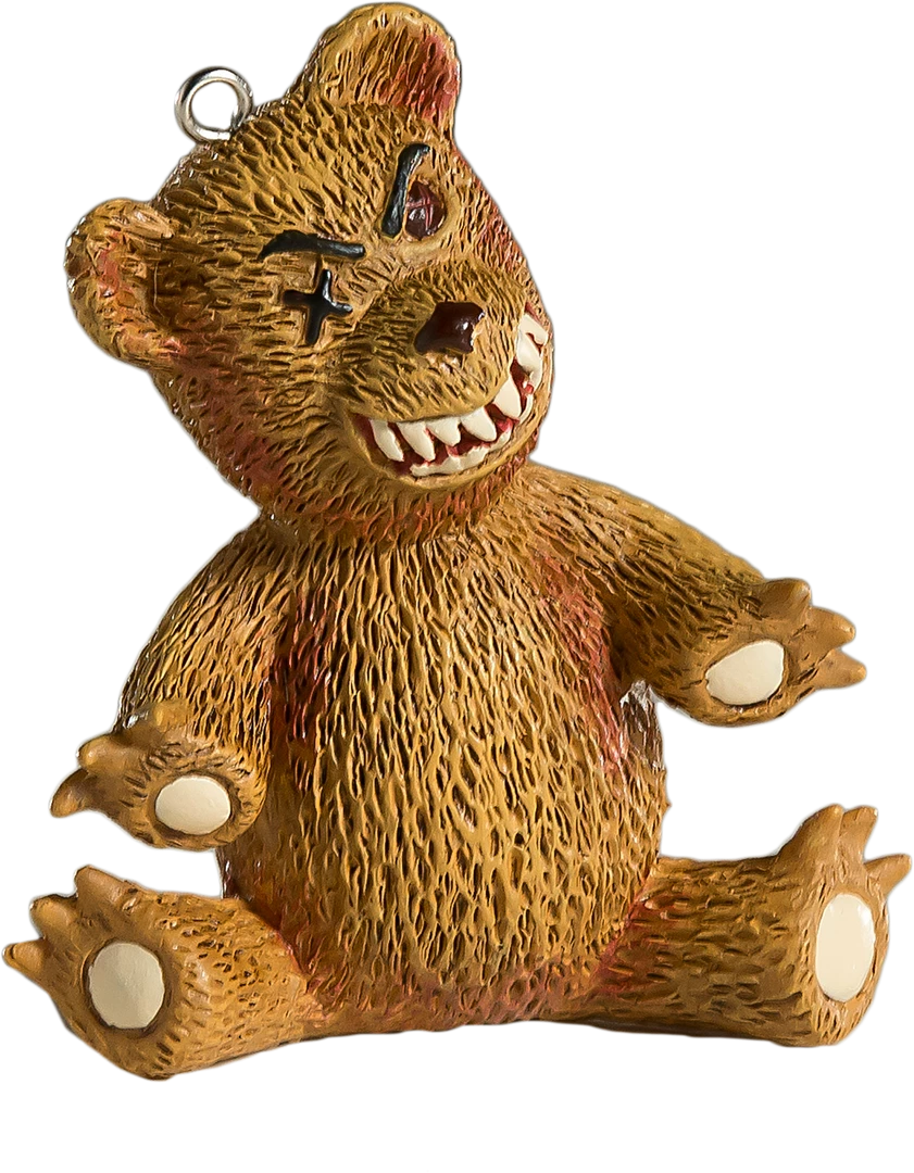 He might seem cute at first… but take a closer look, and you’re in for a nasty surprise! This teddy is anything but cuddly, with his sharp claws, fierce fangs, and missing eye.