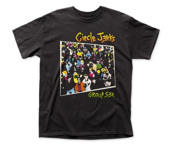 This tee features a full-color image of Group Sex, the debut studio album by the hardcore punk legends, the Circle Jerks.