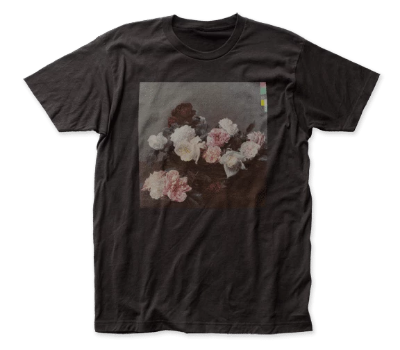 New Order Power, Corruption & Lies album cover design on a black t-shirt.