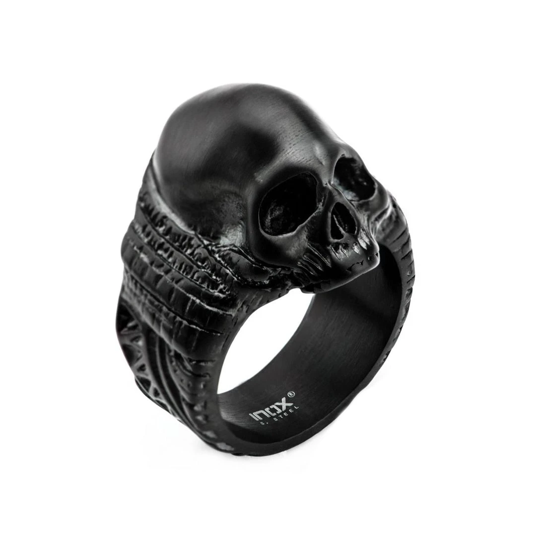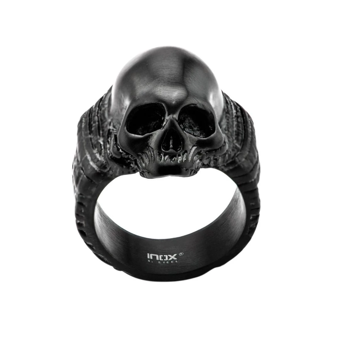 Stainless Steel Black Plated Matte Finish Skull Ring