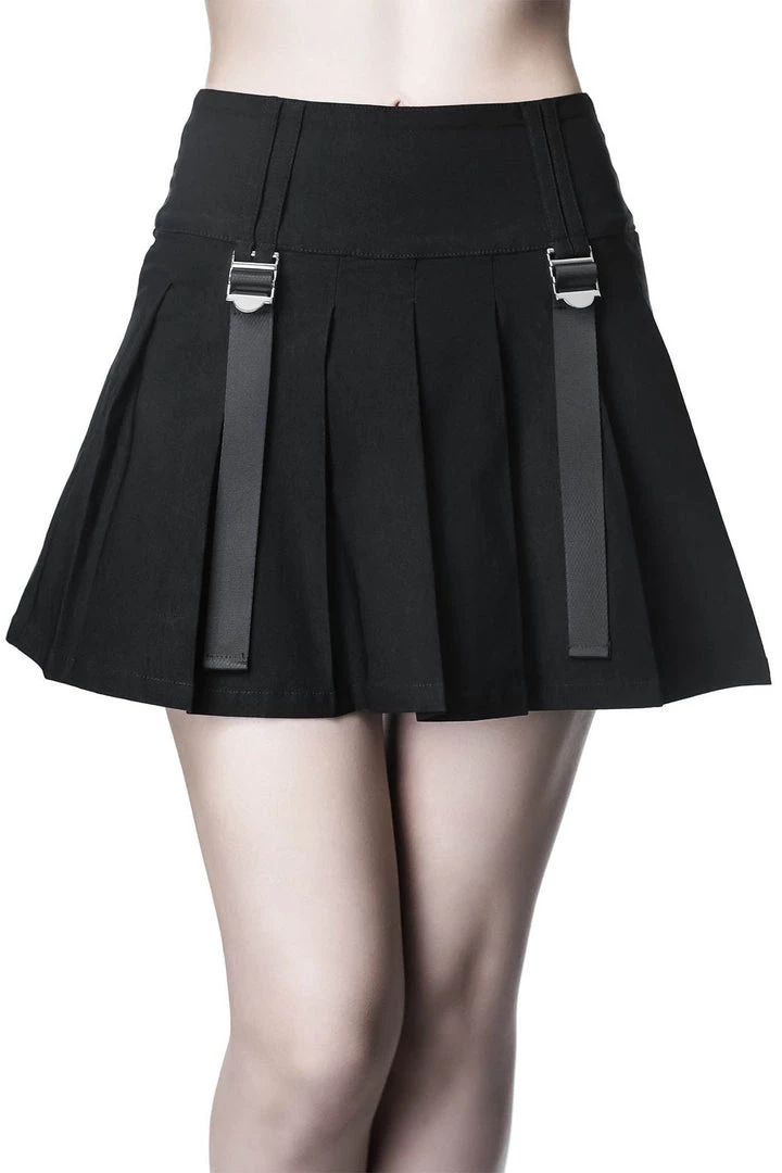 Following the North Star to the moon-gate? The ‘Analog’ mini skirt is yer perfect [and super versatile] must-have wardrobe staple; constructed of super stretch woven-fabric for a flattering fit! Complete with a pleated body, statement buckles and straps – zipped to the back for easy on/off. Easy to dress up or down depending on your mood/moon.