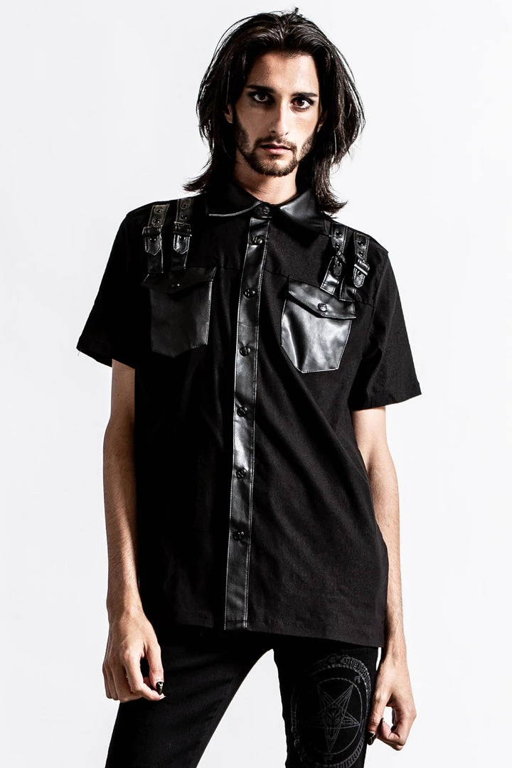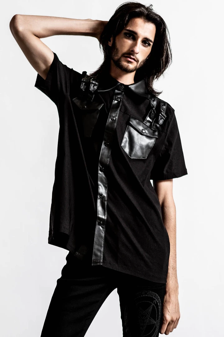 Channel your inner weirdo with our ‘Daze’ button-up shirt. Features a smart button-up front, bold straps with buckles and an all-black finish – the perfect mix of smart and magick.