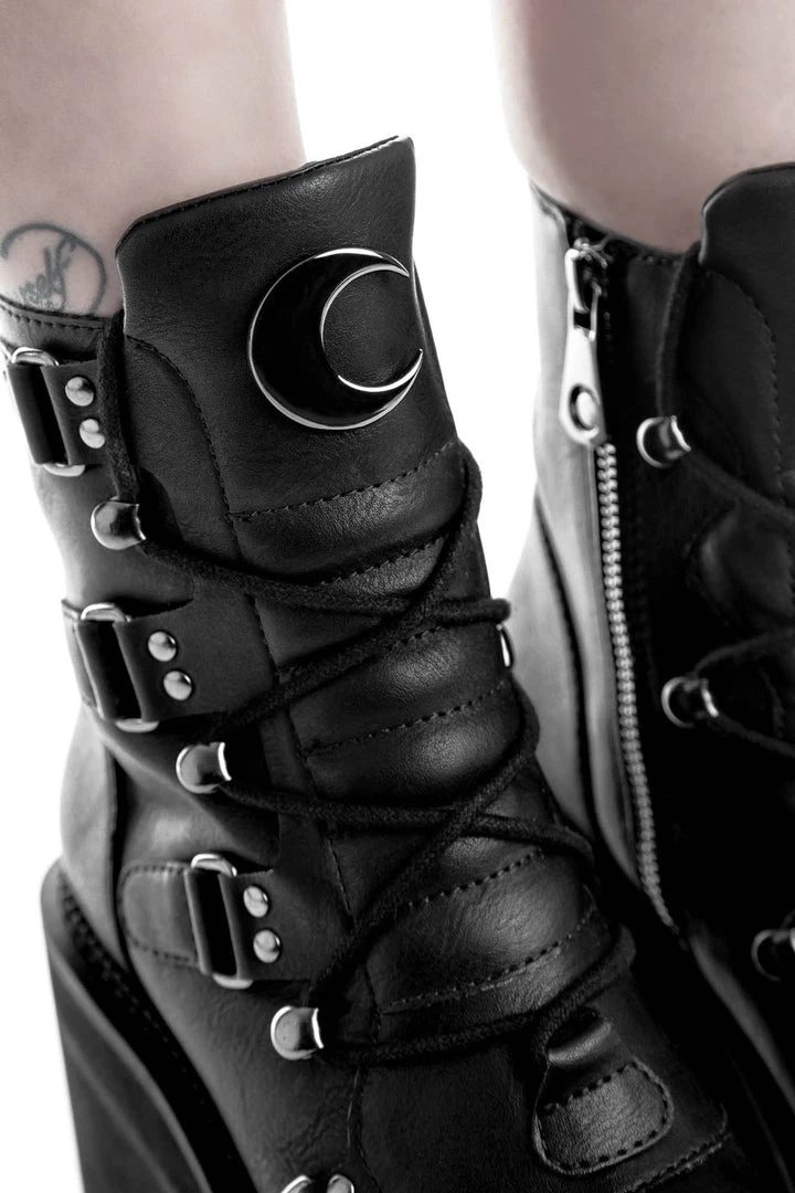 Killstar Women’s Stuff Broom Rider Boots – Black