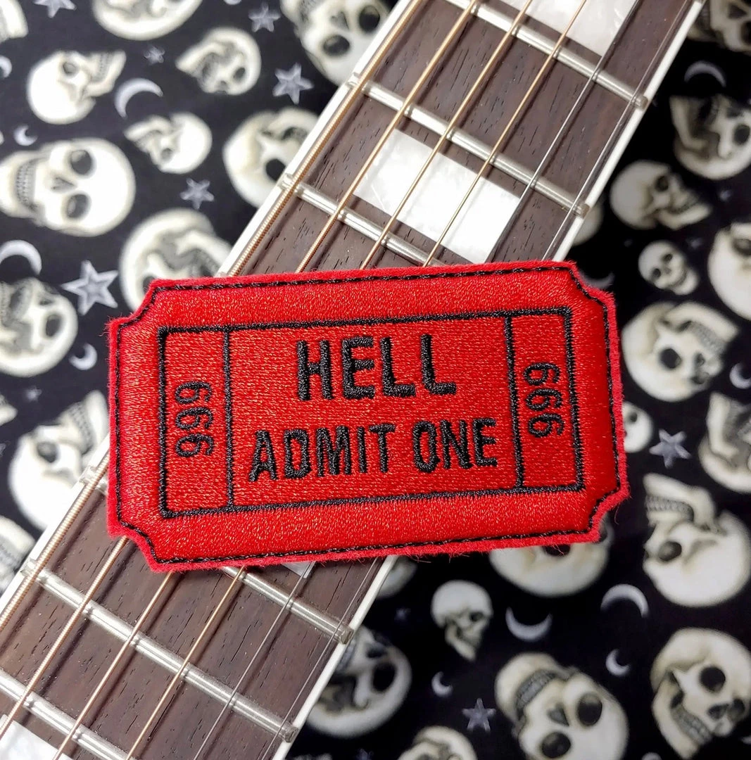Hell Admit One 666 Gothic Iron On Embroidered Patch