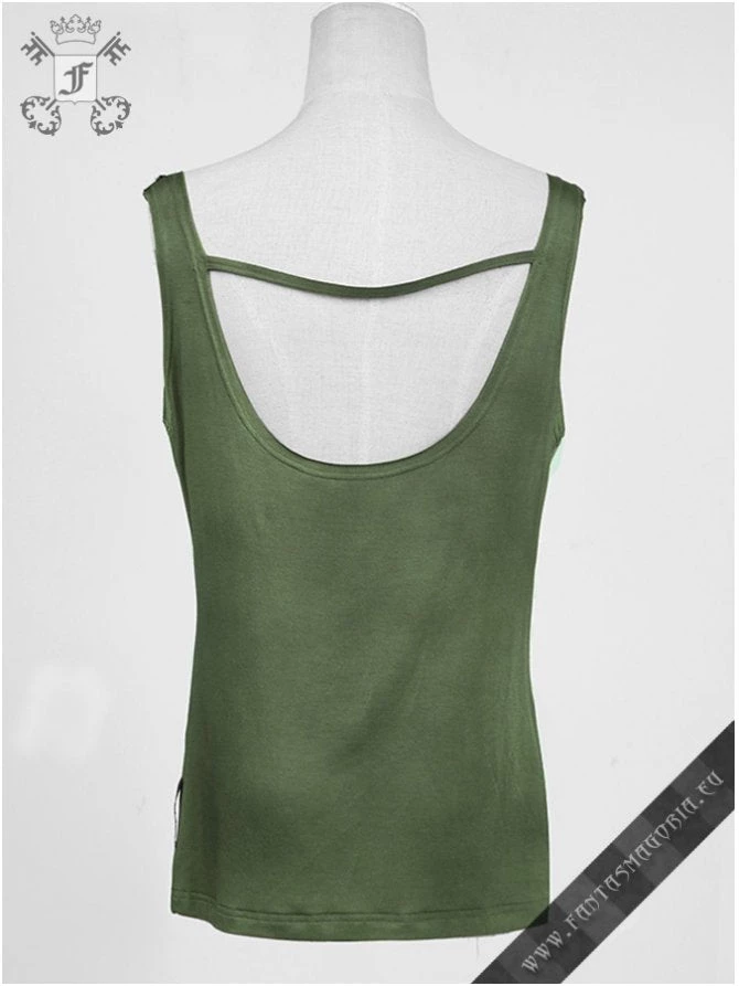 Ombre wash green tank top with a skull print at the front and the skull brooch-patch on the shoulder.