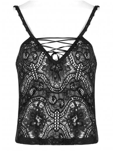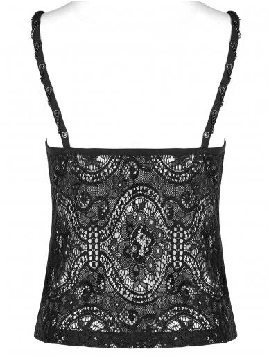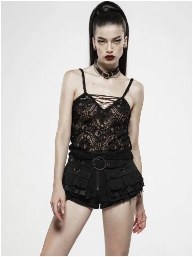 Black Opium top by Punk Rave. Short black lace top with straps and lacing on the front.
