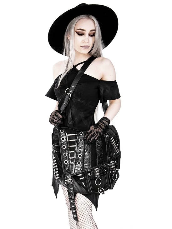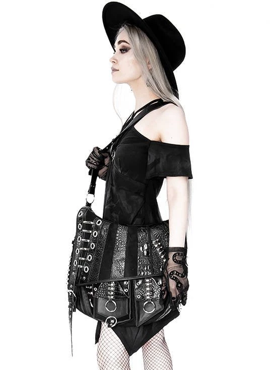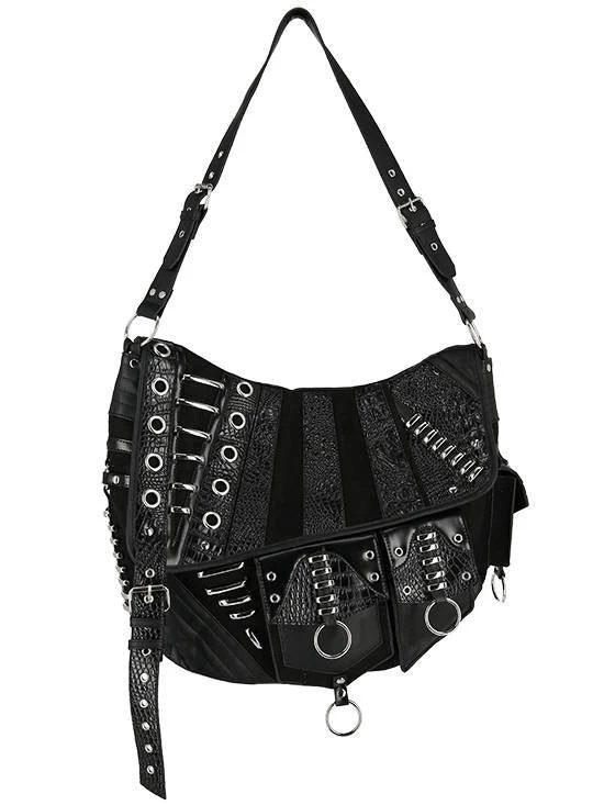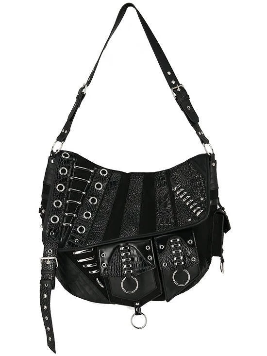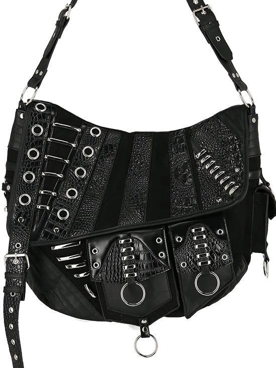 Black, gothic hobo bag with pockets