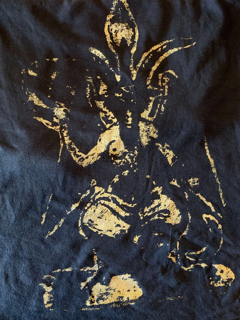 Ultra-soft, women’s cut tank with Baphoment print in distressed gold.
