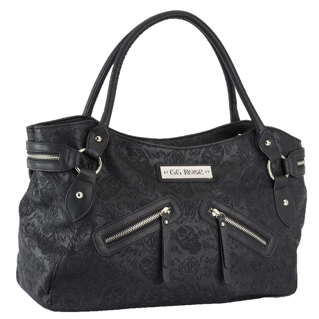 Rock Rebel presents GG Rose sugar skull embossed vegan leather handbag by Rock Rebel.