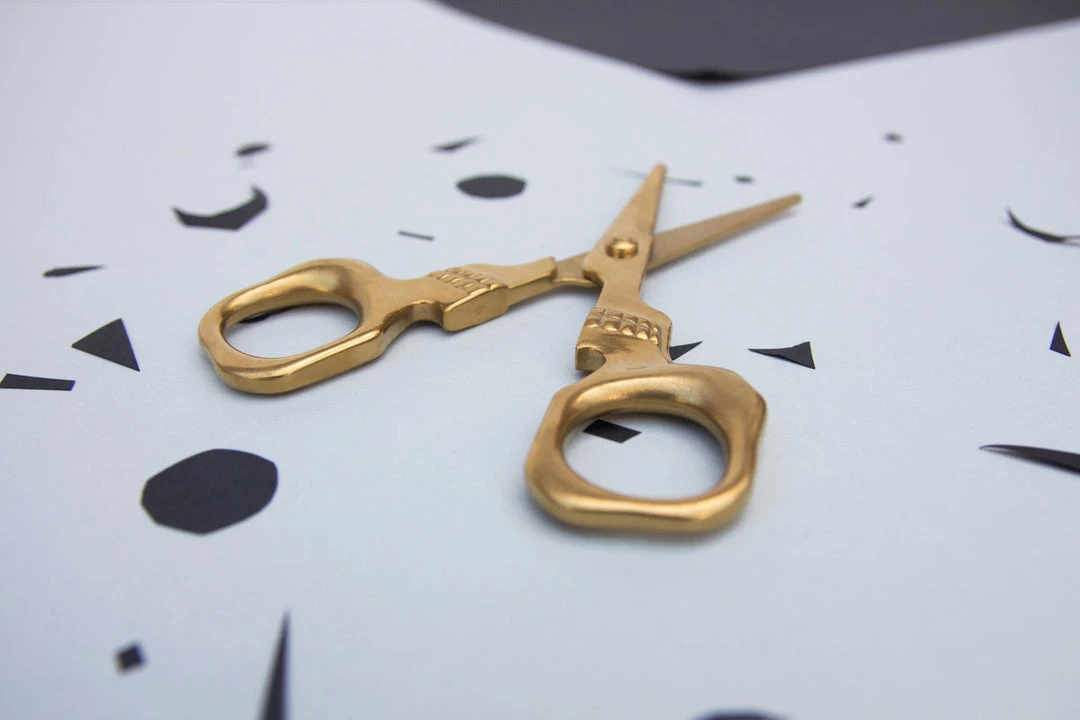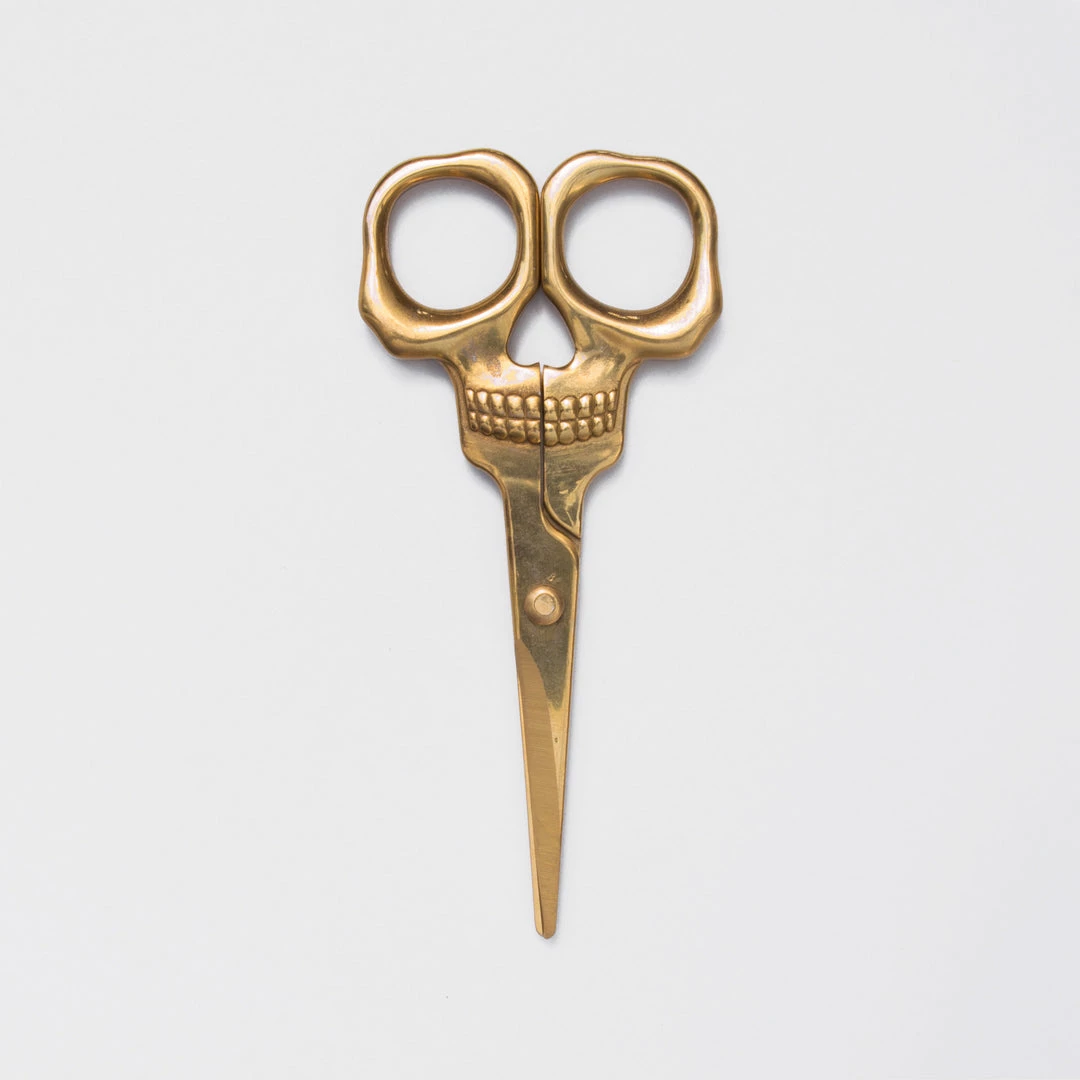 Shockingly sharp stainless-steel scissors with a brass finish. From hair-raising haircuts to creepy paper crafts, these heavy-duty general use scissors are both handy and haunting in equal measure. The best gift for edgy embroiderers. Design by Seb Sabene for SUCK UK